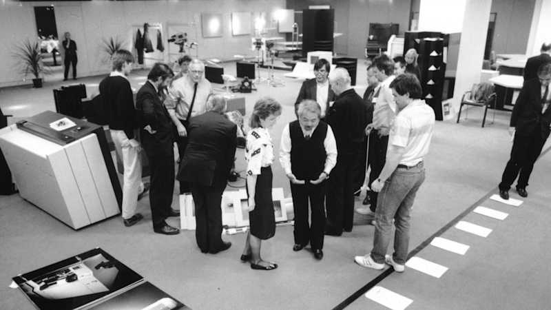 Picture above from iF jury session 1990, left to right: iF tech assistant, iF tech assistant, Herbert Lindinger, Kenji Ekuan, iF tech assistant, Herbert Schultes, Dean Richardson, Robert Blaich, Michele de Lucchi, Dieter Rams, Yuri Solovjev, Vittorio Lampugnani, Stefan Lengyel.